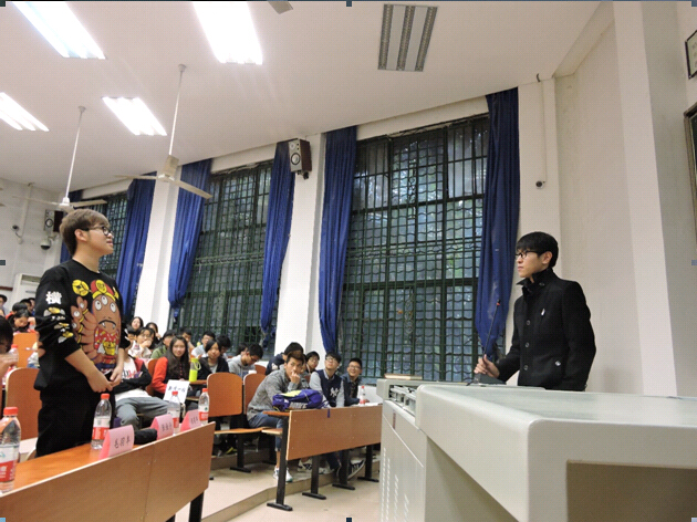 首先开讲的是上一届院学生会主席、来自11级广电班的杨光宇,已经大四的他对求职已有较大的感悟。对于找工作中面临专业不对口现象时如何以突出能力取胜的问题,他给出了三点建议:第一,推荐加入院会、校会、社联三个社团;第二,养成反思的习惯,通过一次次比赛,进而一次次总结,一些解决方法的途径便会成为潜意识,也将成为被面试考官看好的核心竞争力;第三,要有团队协作精神,这也是各面试考察最重要的点。