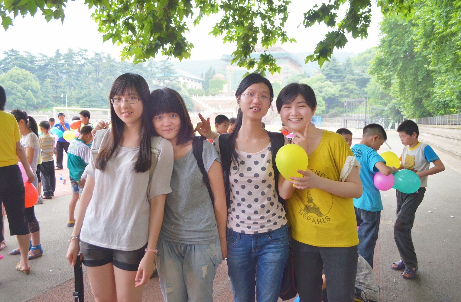 大二参加种太阳志愿者活动,身后是武术学校来参观的小学生们四年间,428一起组队参加过多次专业比赛和业余兴趣比赛,彼此的推进使得大家参与活动的热情也更容易被挑起。大三下,四个人到北京去实习,尽管住的地方相隔甚远,她们仍然一起组队参加了一次广告比赛,因为彼此的熟悉和理解,同样保持了和住在一起时一样高的效率。