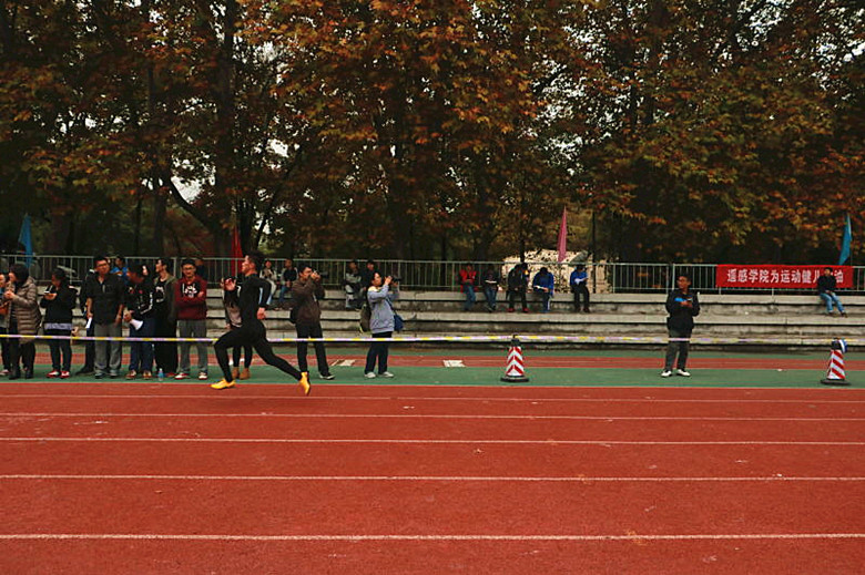 上午举行的最后一场比赛是学生女子3000米决赛,周心旋参加了比赛。赛后,周心旋同学表示,是新闻院同学们的加油呐喊让她有了继续跑下去的动力。