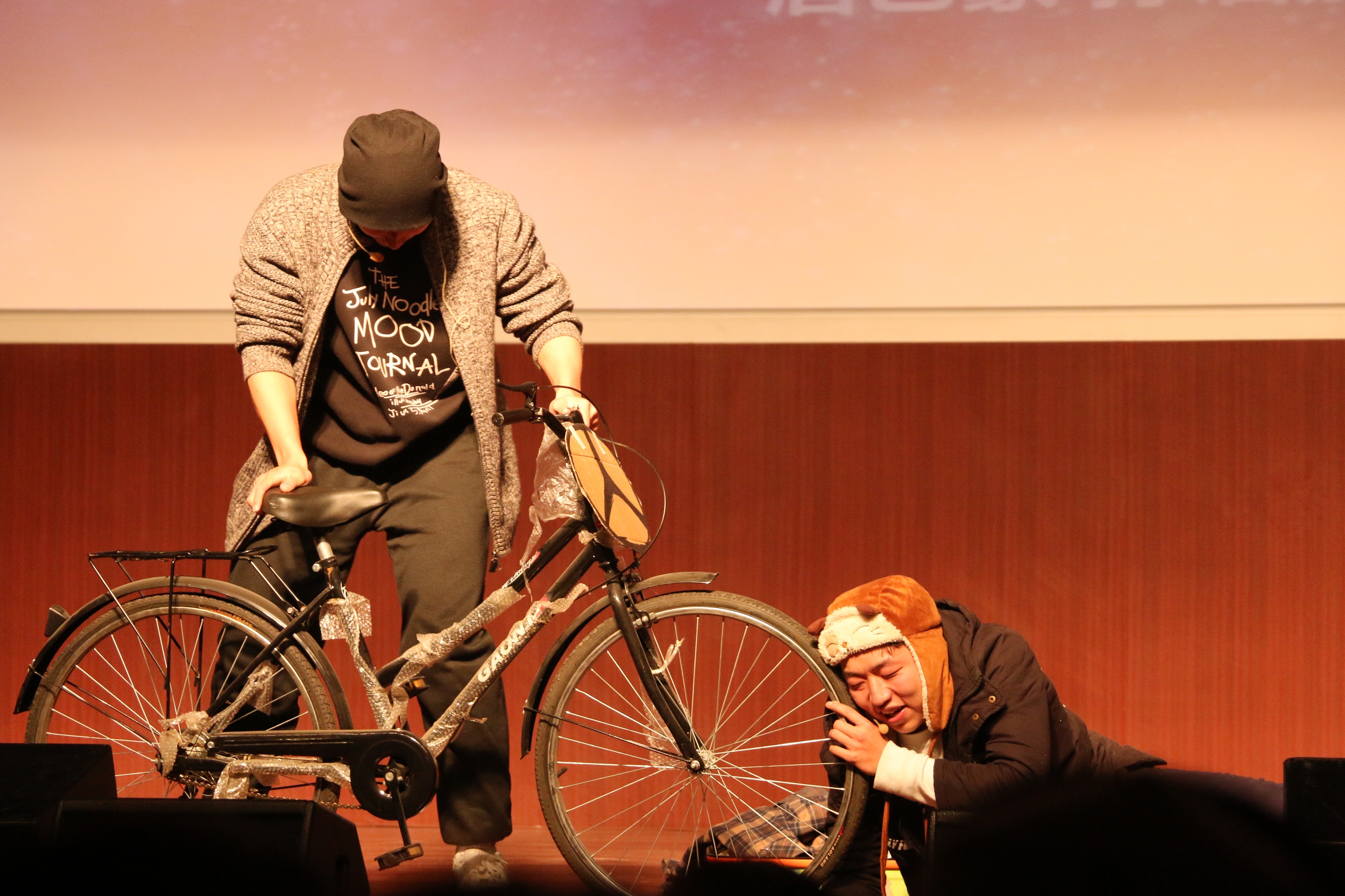 相声《社会主义核心价值观指导下轰轰烈烈的新诗歌运动》由“伉俪情深的相声先锋队”表演,有趣的段子惹得观众捧腹大笑。紧随其后的是搞笑小分队带来的舞蹈,九位男生搞怪的舞姿和新鲜的创意把全场推向了高潮。