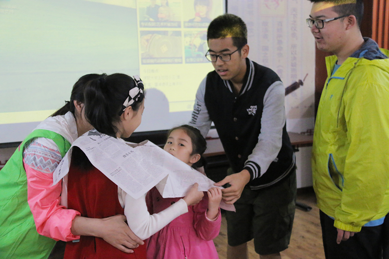 来自武大新闻学院的青年志愿者为社区的孩子们设计了新颖有趣的竞赛,以“心传互动.以趣传乐”的方式让孩子们在游戏中了解党情、学习国史。