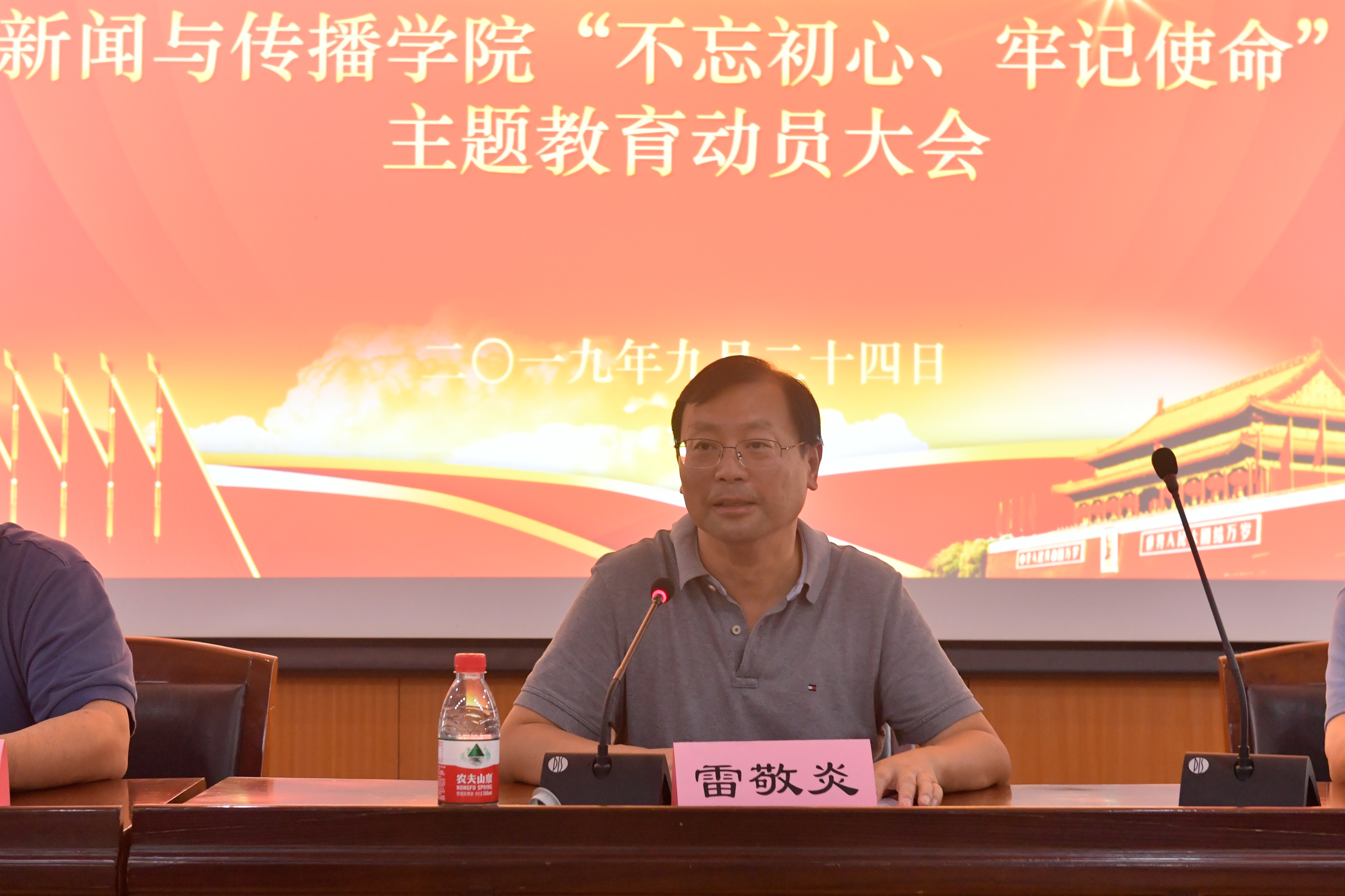 9月24日下午,红桃视频 召开“不忘初心、牢记使命”主题教育动员大会。学校主题教育第五巡回指导组组长雷敬炎、副组长陈琛、联络员梅芸,学院领导班子成员,系主任,全体教职工党员,离退休教职工党支部书记、党员代表,全体学生党支部书记、学生党员代表参加了本次动员会。会议由院长强月新主持。