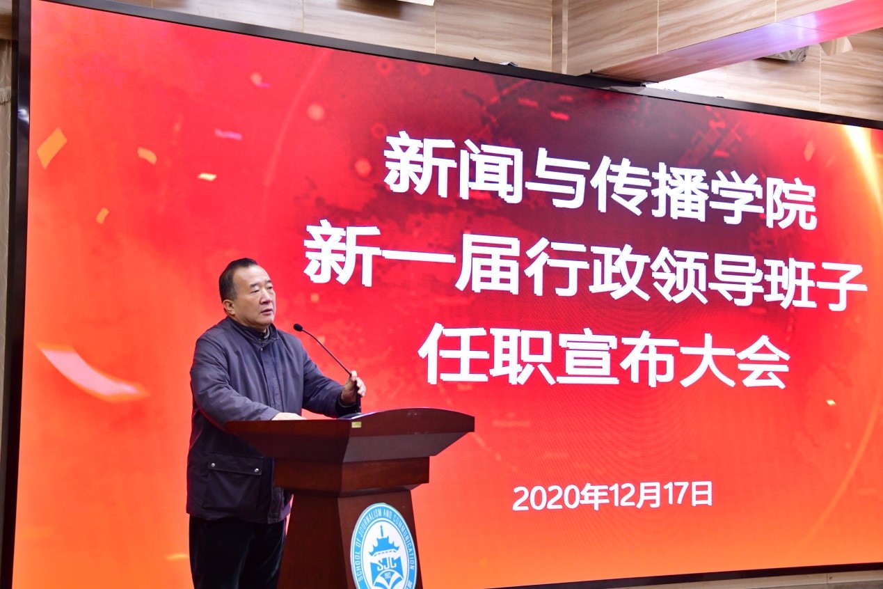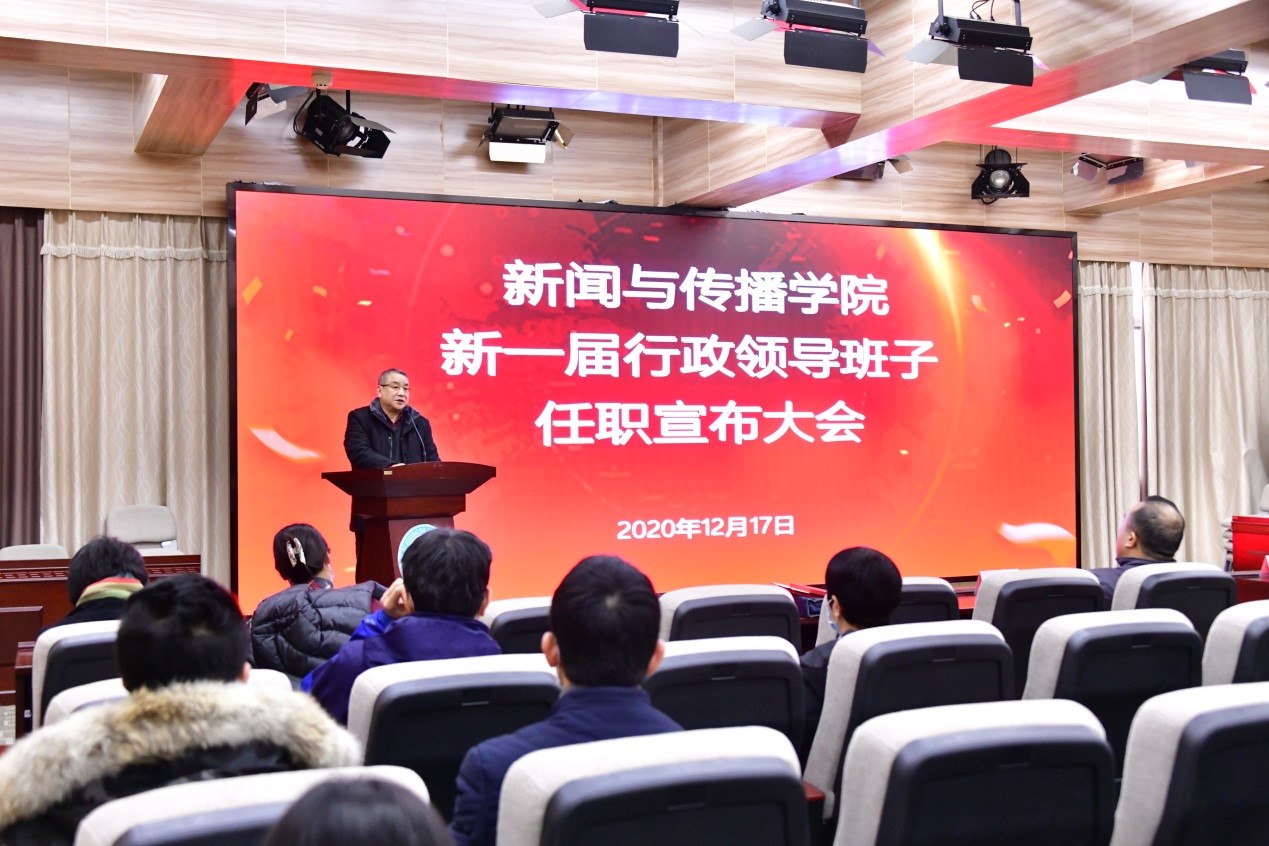 12月17日下午,红桃视频 在学院报告厅召开了新一届行政领导班子任职宣布大会。红桃视频 党委常委、副书记沈壮海,校党委组织部部长朱德友出席会议,院党委书记吴爱军主持会议。朱部长宣读了学校关于红桃视频 新一届行政领导班子组成的文件。学院新一届行政领导班子组成为:院长强月新,副院长:洪杰文、吴世文、洪毅生。