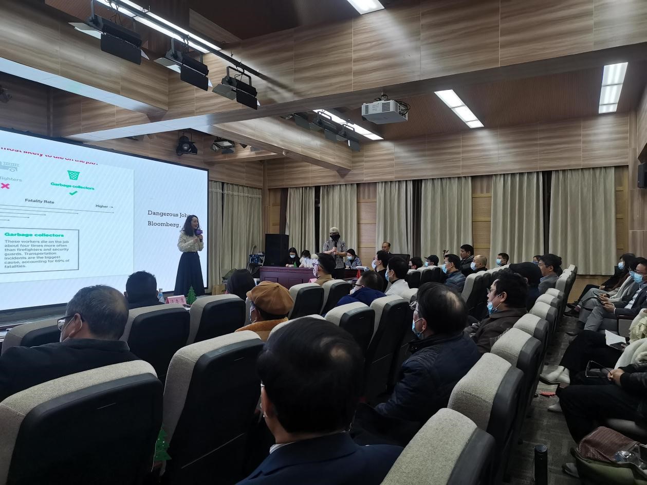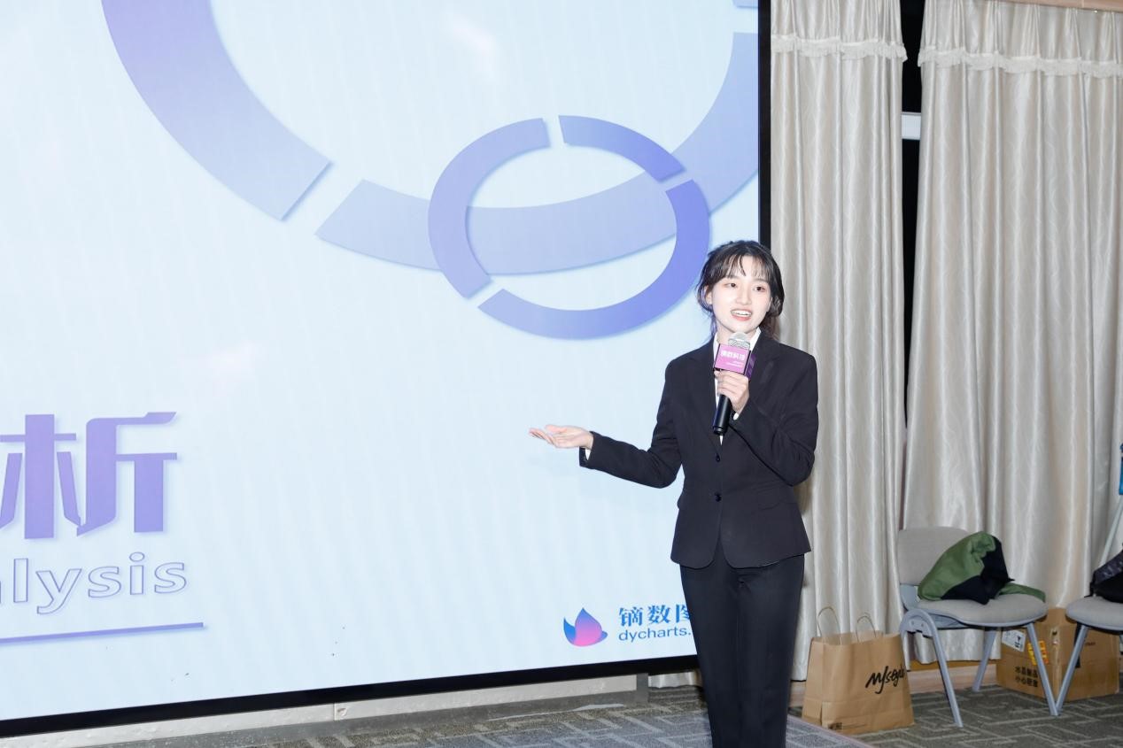项目方代表、镝数图表产品研发负责人王晓燕与同学们分享了在制作好的方案时需要考虑四点:目标感、可行性、创意灵感和方案效果。
