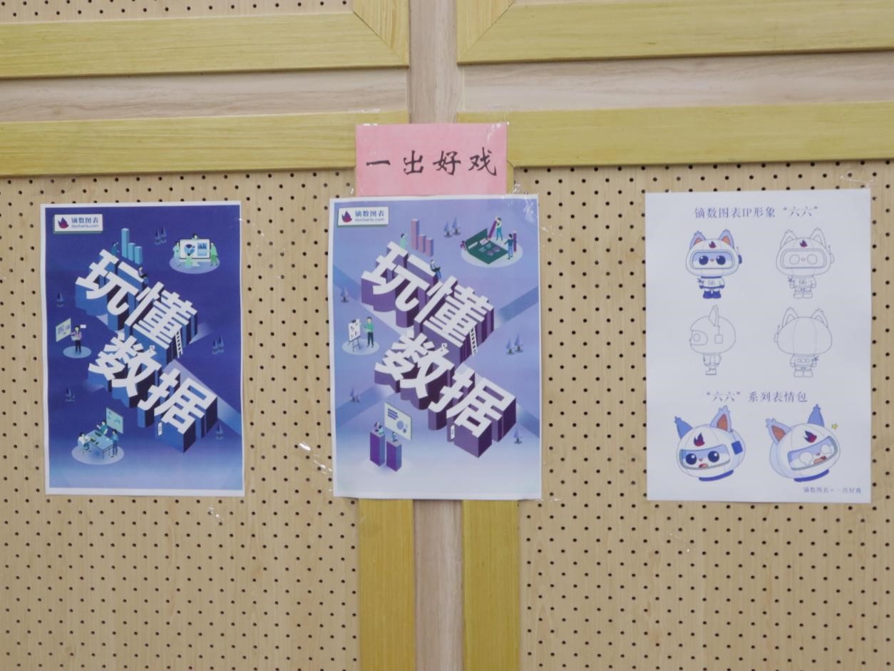 此外,5支学生团队也早早地来到会场,张贴出了为镝数图表设计的海报,在这些创意纷呈的海拔中,学生团队大胆运用色彩、构图、形象设计等元素,展现出了他们对镝数图表的理解和二次创造。