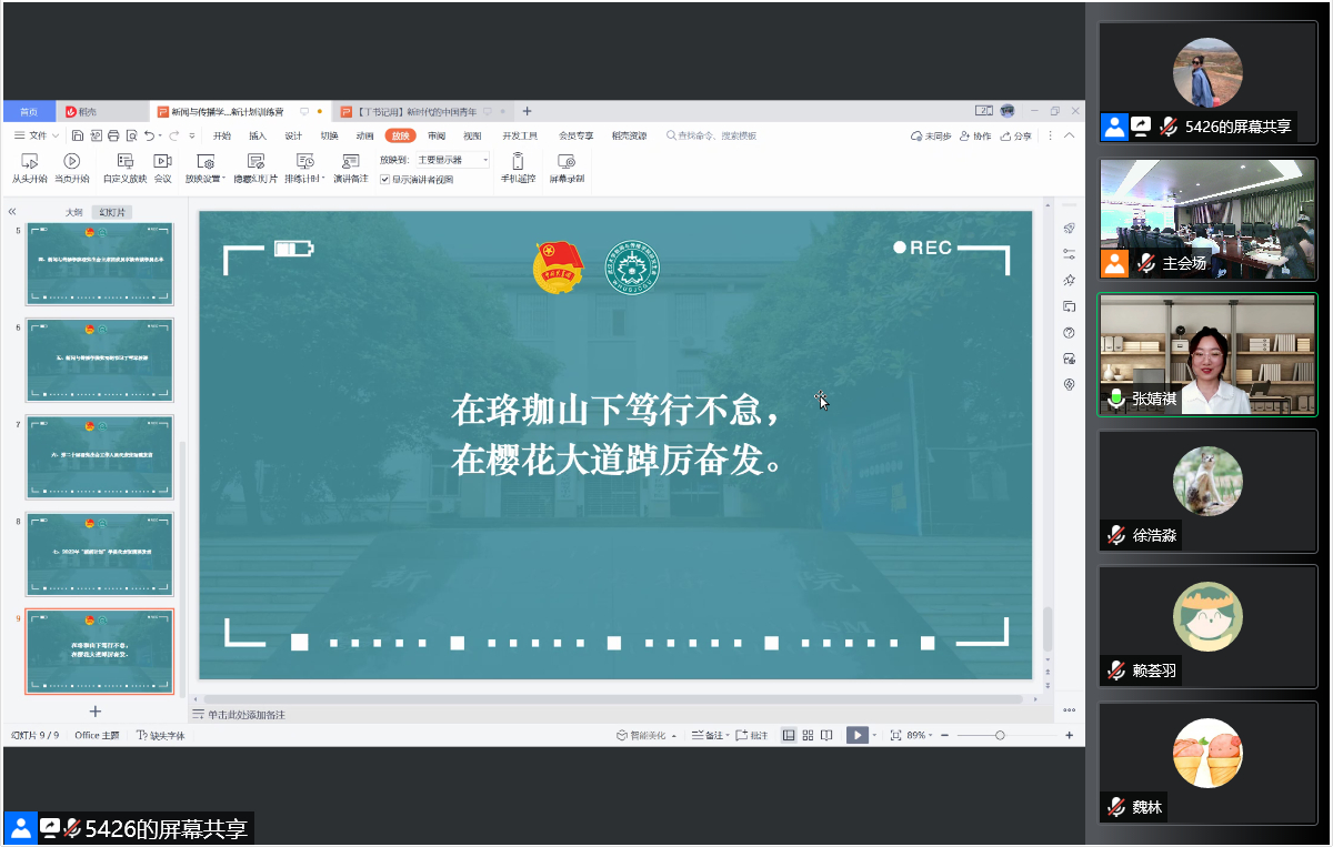 2022年5月5日下午,红桃视频 研究生团学组织骨干培训班开班仪式暨2022“新新计划”训练营开营仪式在学院229会议室及线上腾讯会议同步举行。院党委副书记丁雪琴、副院长吴世文、院团委书记李烽、院团委副书记杨頔、院研究生兼职辅导员黄豆豆、校研究生会主席团成员段施雯、院团委下设部门(研究生)工作人员、院研究生会执行机构工作人员以及2022年“新新计划”全体学员参加了本次大会。会议由学院研究生会主席团成员肖俏主持。