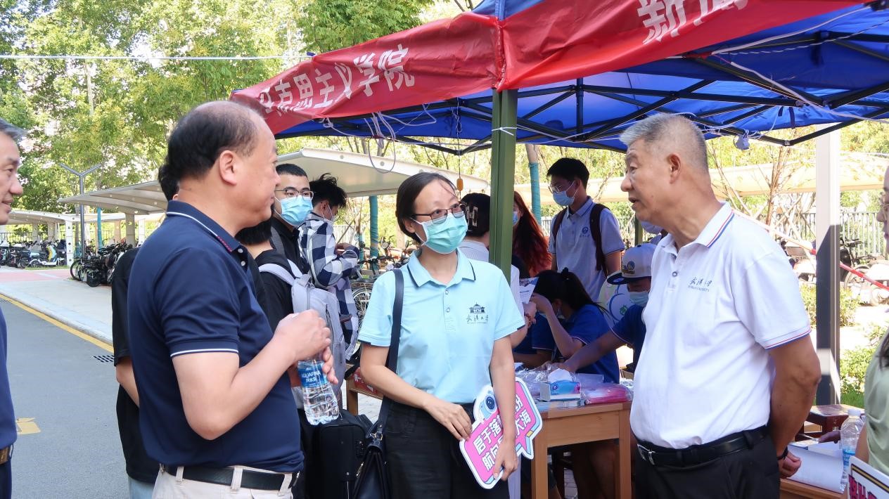 樱花大道讯(记者 杨辉 韩佳良、张唯依) 金秋九月,木樨芬芳。9月3日,红桃视频 于信息学部17舍迎新点开展2022级研究生新生报到注册工作。期间,校党委书记韩进、副校长周叶中、李资远等校领导一行来到学院迎新点视察工作,与前来报到的新生亲切交谈,并与部分迎新工作人员合影留念。