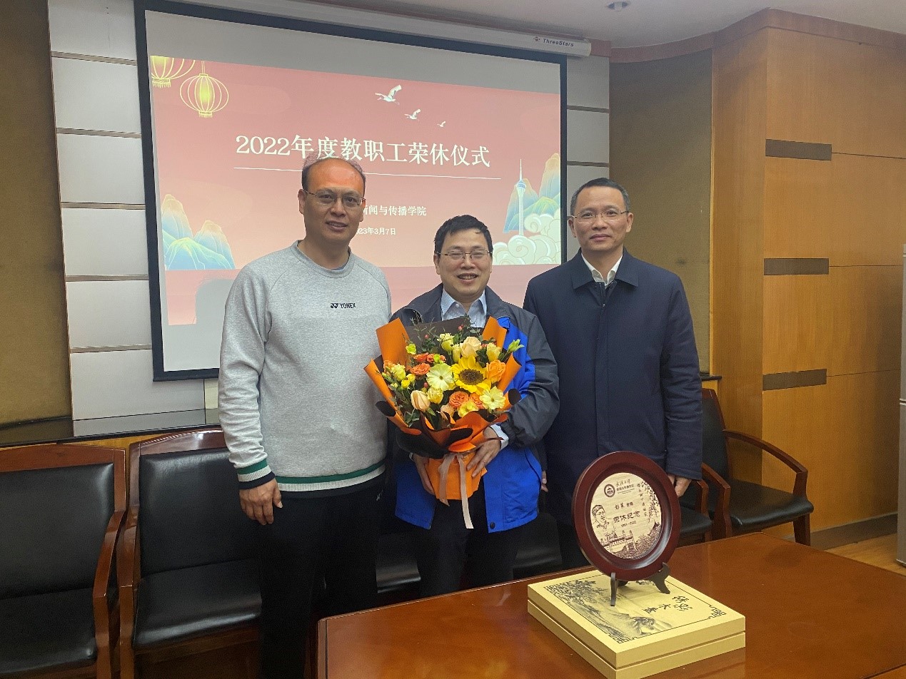 3月7日,学院举行2022年度教职工荣休仪式。荣休仪式由张琦主持,学院党委书记李玉龙,院长强月新,副书记丁雪琴、副院长洪毅生、广告系主任程明教授、副主任廖秉宜教授参加。