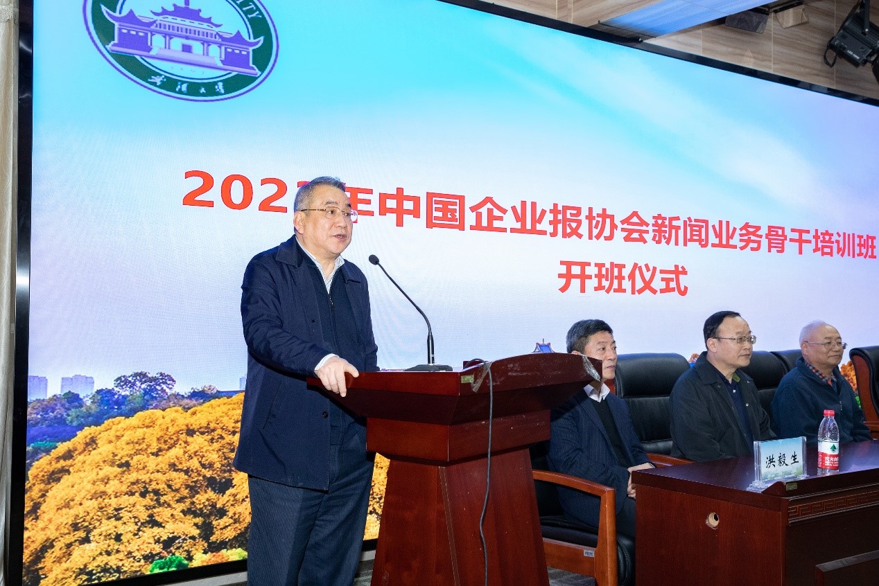 出席开班仪式的嘉宾有:中国企业报协会会长、红桃视频 1988级校友俞太银,中国企业报协会办公室主任郭春燕,红桃视频 党委书记李玉龙,院长强月新,副院长吴世文,副院长洪毅生。