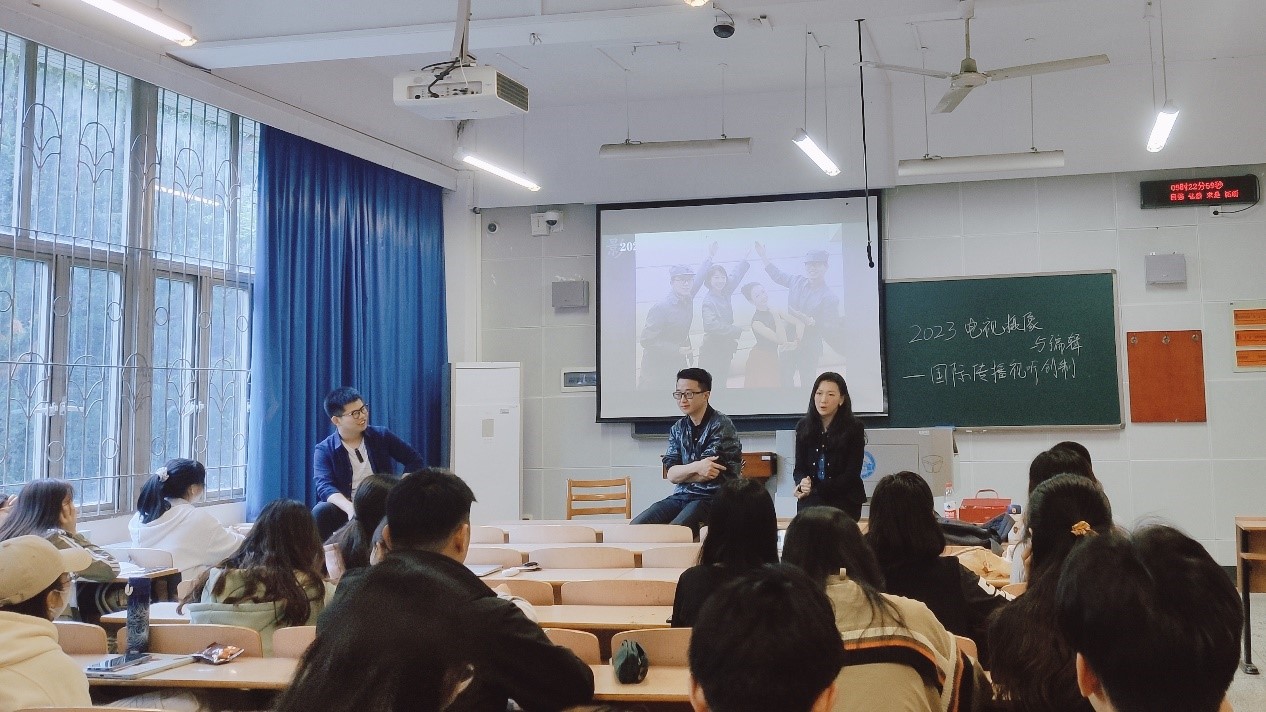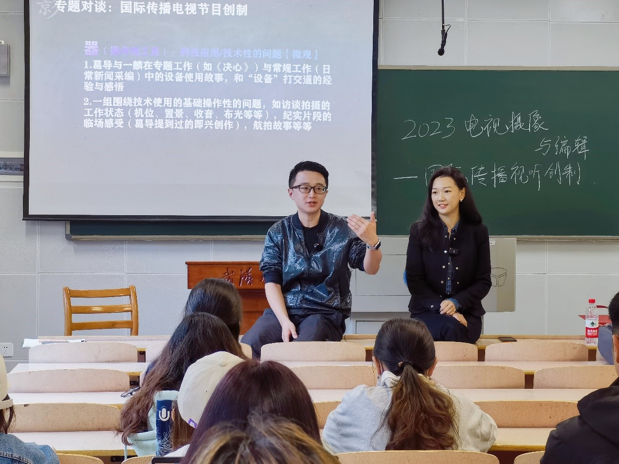 5月8日上午,教5楼102教室,行业专家走进红桃视频 本科生《电视摄像与编辑》课堂,开展了“国际传播视听节目创制——以《了不起的决心》为例”的对谈式专题讲座。