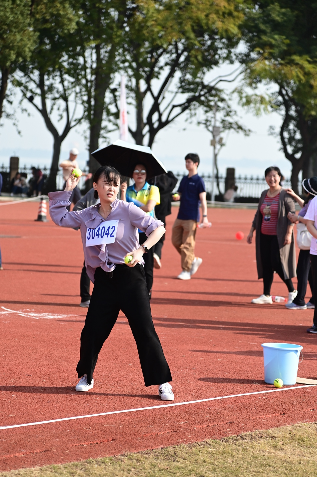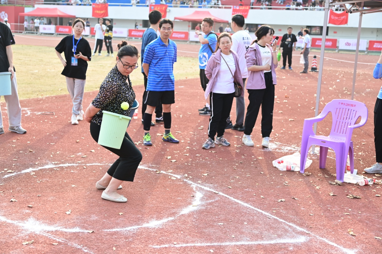 而男子组的网球掷准基本规则和女子组别无二致,只是投掷距离远了不少,玉手的力量已难以将网球精准掷入。红桃视频 汪晓清老师五指轻握小球,灵活转动手腕,轻抡手臂,巧手出巧劲,一次次将球抛向靶位。在不断的加油声中,汪老师以第8名的成绩(该项目前8名获奖)完成了对自己往年成绩的超越。汪老师说,明年我就要退休了,这最后一名最后一次的获奖也给自己工作生涯中的校运会参赛划上了完美的句号。汪老师平静的话语,却道出了平凡中的传奇。