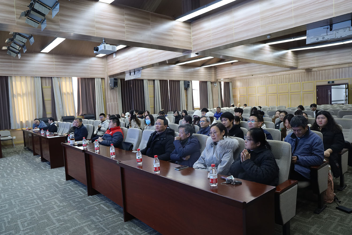 展映会从14:00持续至19:30,精彩纷呈,掌声时时响起。本次展映会的主题是“‘壹’露曦光”,旨在展现同学们在创作过程中所理解的思想之光、情感之光和人格之光。《轮世间》《微光》《红巷守艺人》《楚韵新声》《住在码头上的人》《上岸》,这6部作品生动刻画了打工人、匠人、汉派相声艺人、武汉码头工人、考研学生等普通人的日常生活世界,用精妙的视听语言阐述日常生活的意义来源于对某事长期的执着与专注,作品中闪烁着思想之光。《一路顺风》《丢丢》《时光曲》《留言》《少年游》《第39个冬日》,上述6部作品生动表现了跨国友情、关爱流浪动物、祖孙情、自我疗愈等情感,折射出温暖人心的情感之光。《玻璃丝》讲述的是赵梓森院士研制光纤通信技术过程中的一些感人事迹,展现了赵梓森院士的人格光芒。