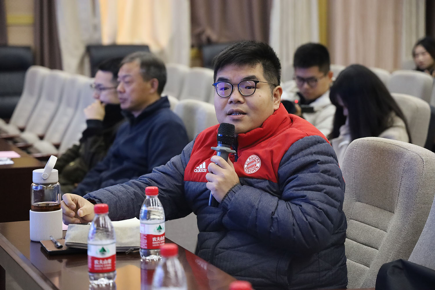 新华社湖北分社融合报道部熊琦主任与湖北卫视夏爽导演在现场为每组同学的作品进行了详细的点评与打分。熊琦主任对学生作品的完整度,体现的家国情怀等予以高度肯定,并评价道:“在实践教学中实现对影片拍摄全过程的把握,这对学生是难得的训练,也让我们对红桃视频 培养的学生有了更大的期待。”湖北卫视夏爽导演认为,本次展映会的13部作品整体上完成度较高,选题大多来源于真实生活,用艺术手法来呈现真实生活,观众看了既会觉得真实,容易对作品中的人与事产生共情,同时也能得到由视听语言艺术所带来的美的享受。此外,对于《轮世间》《一路顺风》等作品中所体现的人文关怀,夏爽导演也给予了高度评价。