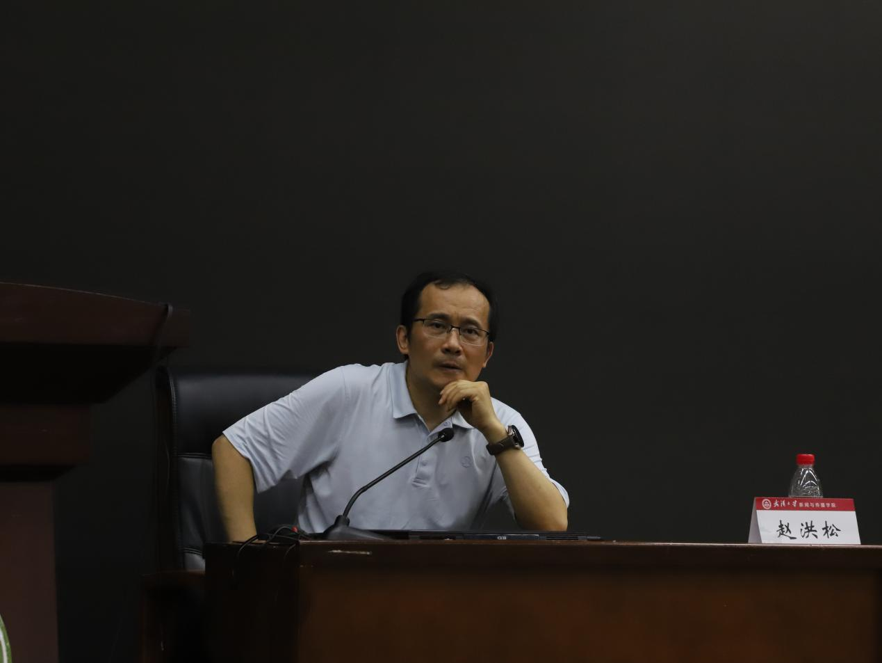 6月14日下午14:30,湖北日报传媒集团总编辑、高级记者赵洪松做客 “马克思主义新闻观大讲堂”,主讲“‘双亿级’平合深度融合的三重逻辑——湖北日报传媒集团深度融合十年启示”。姚曦教授及师生近200人参加,讲座由学院挂职副院长、新闻学系主任王敏副教授主持。