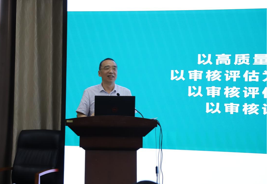 涂险峰教授从本科教育教学审核评估标准评估流程与工作准备等方面展开介绍,详尽解读了新一轮审核评估的指标体系,特别是从“1+1”到“1+3+3”报告的变化内涵,并对线上线下审核评估流程进行了系统梳理。同时,他还针对如何做好迎评促建工作提出了工作重点和重要建议。