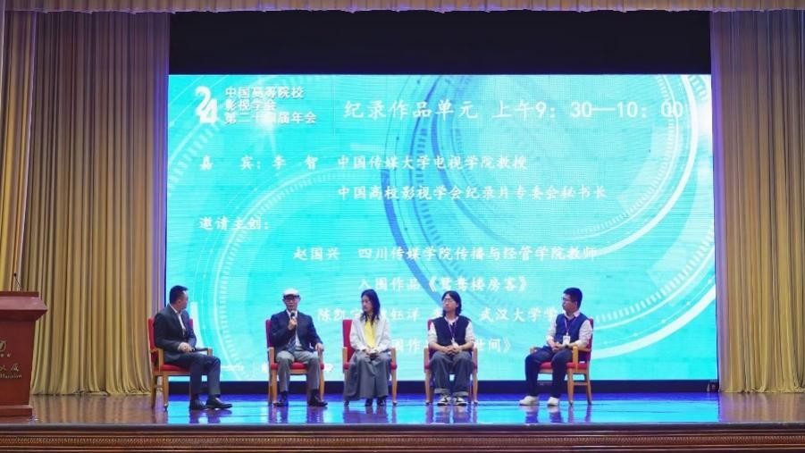 此外,《轮世间》作者魏钰洋、李畅及指导老师陈凯宁作为优秀作品团队参与10月27日的纪录作品单元主创交流会。该场会议由中国传媒大学电视学院教授、中国高校影视学会纪录片专委会秘书长主持,教师组优秀作品《鸳鸯楼房客》作者赵国兴老师与《轮世间》创作团队共同参与。两组优秀作品主创回顾创作历程,分享创作经验,就“纪录片中的空间”“被构建的真实”“与拍摄对象的关系”等纪录片相关的话题展开了充分的交流。纪录片《轮世间》通过“轮滑大圣”这一独特视角,揭示了生活中的细腻情感和深层的生命思考,展现了红桃视频 学生的创新能力与人文关怀。